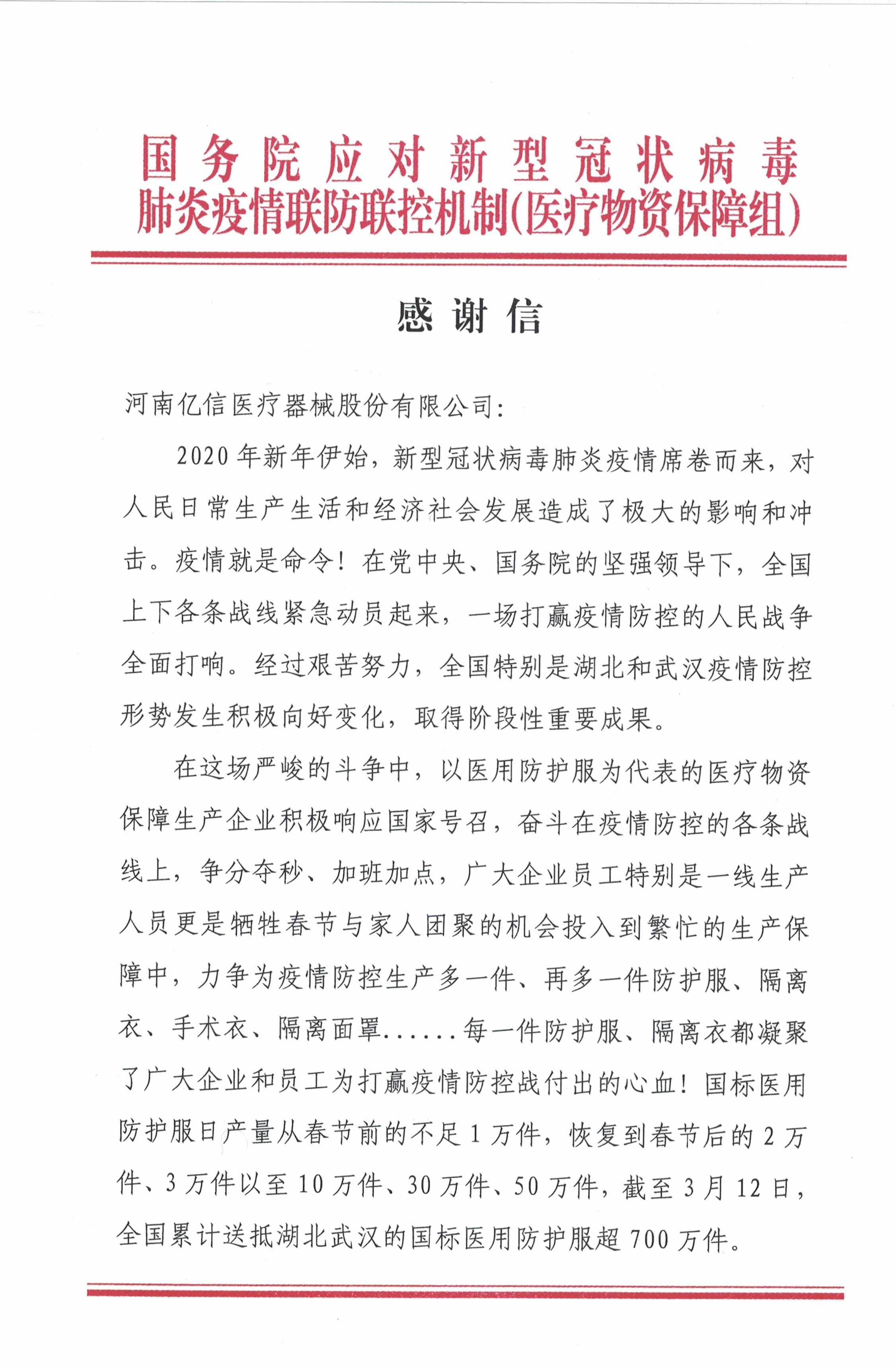 【概要描述】近(jin)期(qi)各(ge)媒(mei)體(ti)相(xiang)繼(ji)報(bao)道(dao)醫(yi)療(liao)機(ji)構(gou)醫(yi)用(yong)防(fang)護(hu)用(yong)品(pin)急(ji)缺(que),億(yi)信(xin)醫(yi)療(liao)積(ji)極(ji)承(cheng)擔(dan)社(she)會(hui)責(ze)任(ren),全(quan)力(li)做(zuo)好(hao)新(xin)型(xing)冠(guan)狀(zhuang)病(bing)毒(du)防(fang)疫(yi)工(gong)作(zuo),最(zui)大(da)限(xian)度(du)保(bao)障(zhang)防(fang)疫(yi)物(wu)資(zi)的(de)供(gong)應(ying)。公(gong)司(si)保(bao)持(chi)價(jia)格(ge)穩(wen)定(ding),絕(jue)不(bu)哄(hong)抬(tai)物(wu)價(jia),堅(jian)決(jue)抵(di)製(zhi)擾(rao)亂(luan)市(shi)場(chang)秩(zhi)序(xu)的(de)行(xing)為(wei),積(ji)極(ji)配(pei)合(he)國(guo)家(jia)相(xiang)關(guan)部(bu)門(men)做(zuo)好(hao)疫(yi)情(qing)防(fang)控(kong)工(gong)作(zuo),億(yi)信(xin)醫(yi)療(liao)竭(jie)盡(jin)全(quan)力(li)為(wei)防(fang)疫(yi)工(gong)作(zuo)貢(gong)獻(xian)自(zi)己(ji)的(de)力(li)量(liang)!